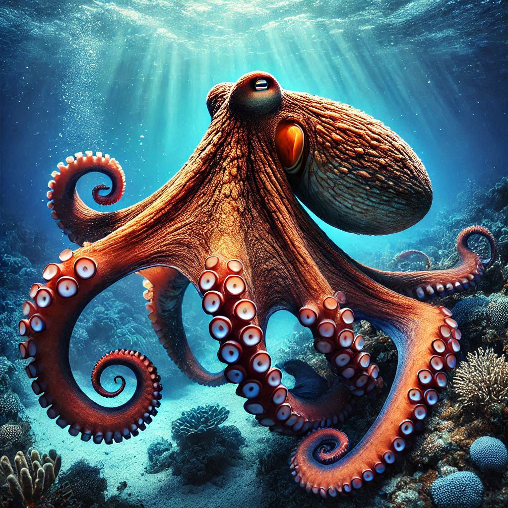 I polpi dimostrano un’intelligenza straordinaria per degli invertebrati marini. Una caratteristica unica è la distribuzione del loro sistema nervoso: due terzi dei loro neuroni si trovano nei tentacoli, creando una sorta di “mini cervelli” diffusi.