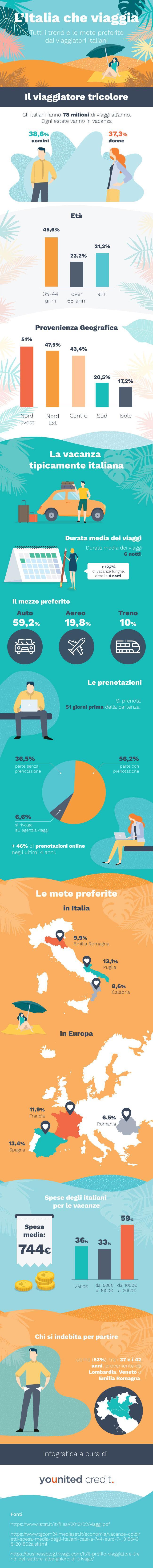 Una immagine che spiega meglio di mille parole e con un bel approfondimento circa le scelte e le abitudini degli italiani in vacanza tra durata, spesa media, mezzo di trasporto e destinazioni preferite per staccare dalla solita routine lavorativa e concedersi finalmente il meritato relax.