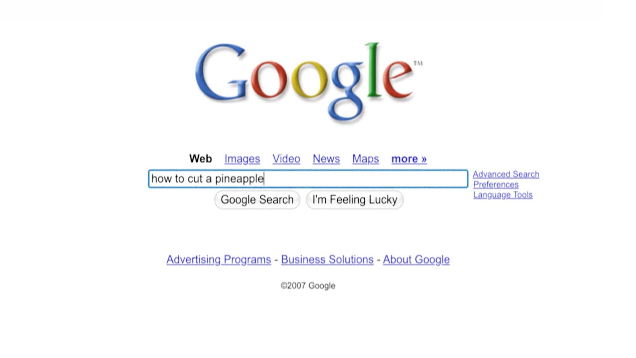 Un divertente video celebrativo di Google per festeggiare i 25 anni di ricerche e quindi di storia il tutto inizia con una semplice domanda: How to cut a pineapple over come tagliare un Ananad? Ecco scorrere 25 anni di evoluzioni…